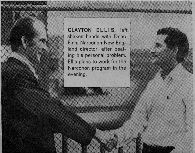 BOSTON–It is said that miracles happen only in works of fiction, but you will never convince Clayton Ellis of Cambridge of that. In 1950 when he was only 21 years old, he had already developed a serious drinking problem. The problem had led to crime, and he was convicted in that year of four counts of armed robbery. He had robbed a liquor store and three taxi drivers. He was released from Norfolk Prison Colony in 1953 on parole, and while he gave up a life of crime, his drinking problem became worse.